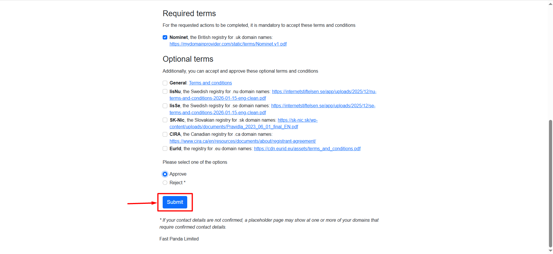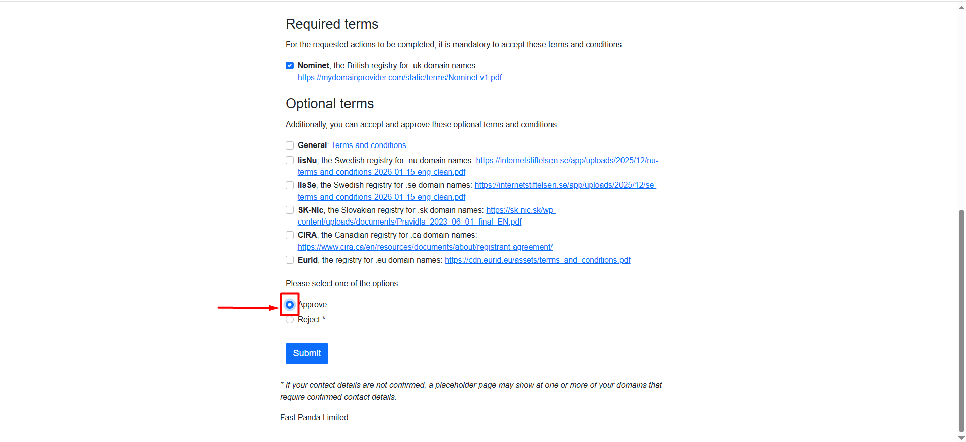 • To complete the domain ownership verification, the “Approve” option must be selected.