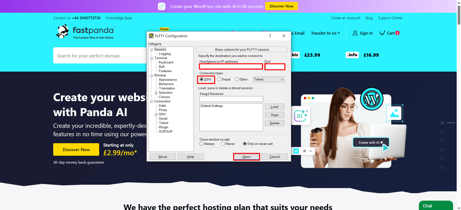 - Open the SSH client installed on your computer (Terminal, Putty, etc.). The steps below are explained using Putty.