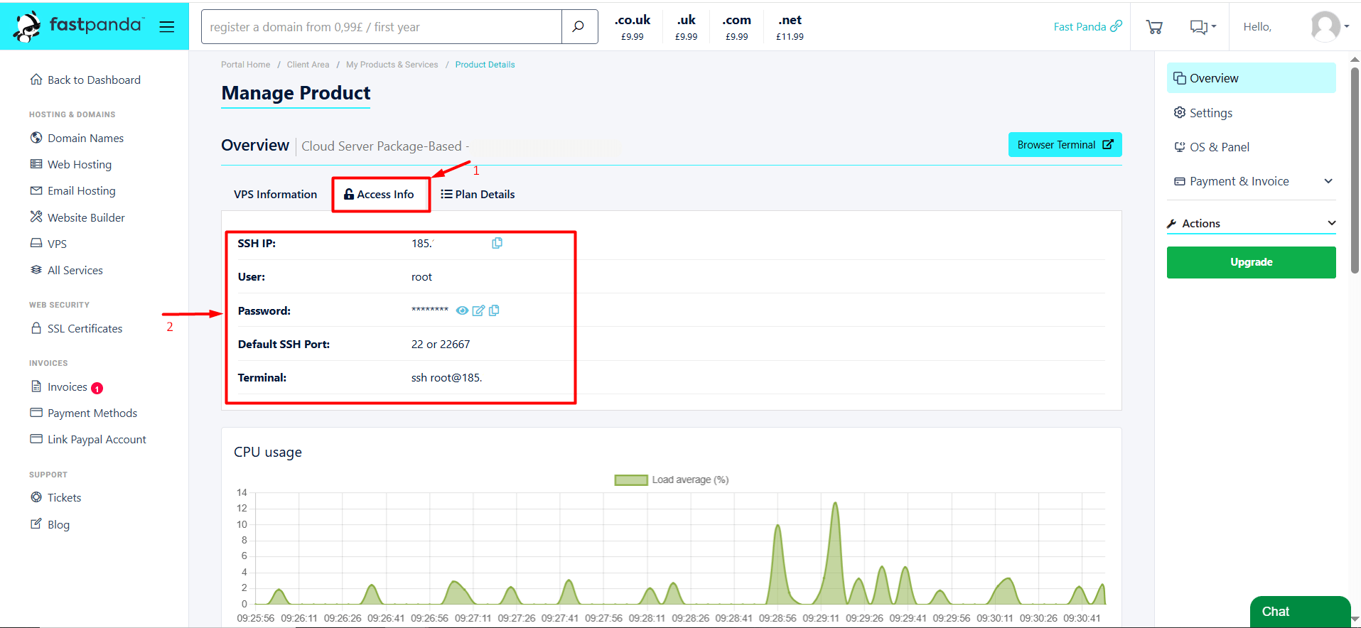 - Connection details are required to access the Linux VPS. To obtain the connection details, visit the website www.fastpanda.co.uk.