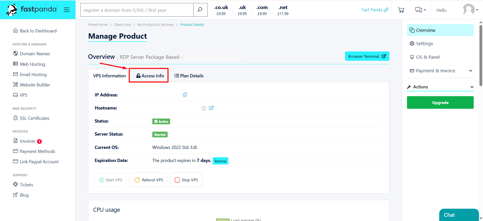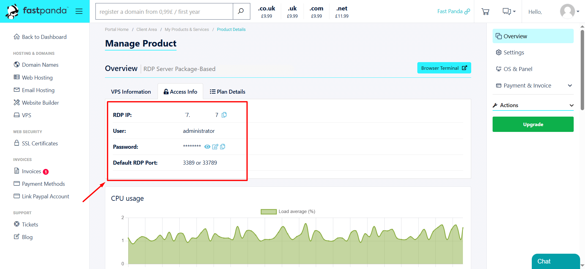 • To access a Windows server, you will need connection details. To obtain these details, visit the website www.fastpanda.co.uk.