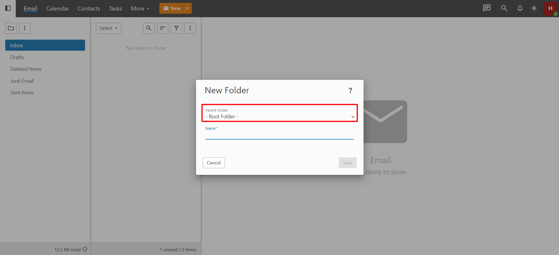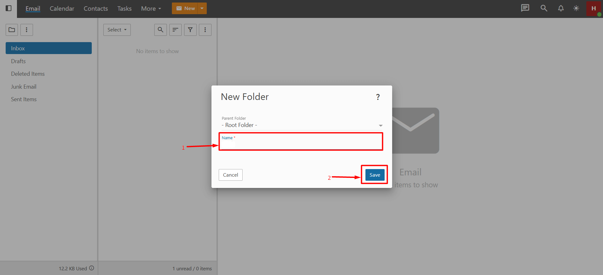 - Enter the name of your new folder in the “Name” field and click the “Save” button. Important Information: